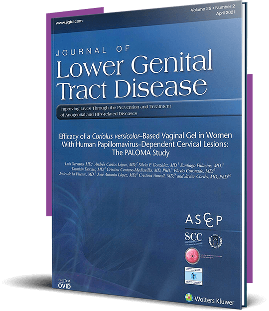 Serrano L, López AC, González S, Palacios S, Dexeus D, Centeno C, Coronado P, de la Fuente J, López Fernández J, Vanrell C and Cortés J. Efficacy of a Coriolus versicolor–Based Vaginal Gel in Women With Human Papillomavirus–Dependent Cervical Lesions: The PALOMA Study. J Low Genit Tract Dis 2021;25: 130–136.